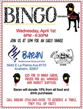 $20 for 10 bingo cards, prizes for all winners and basket raffles.